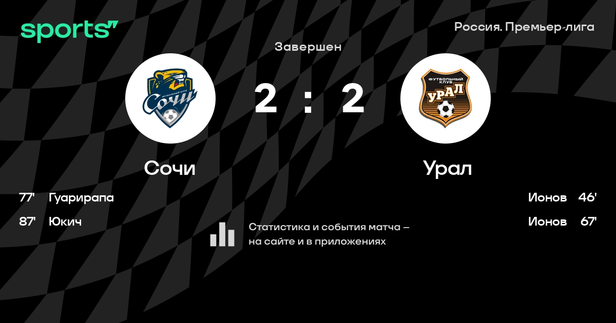 Сочи – Урал: Урал забивает в 6 последних матчах против этого соперника