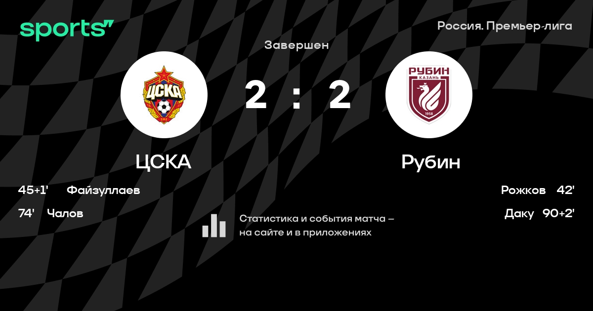 ЦСКА – Рубин: Рубин забивает в 7 из 9 последних матчей против этого соперника