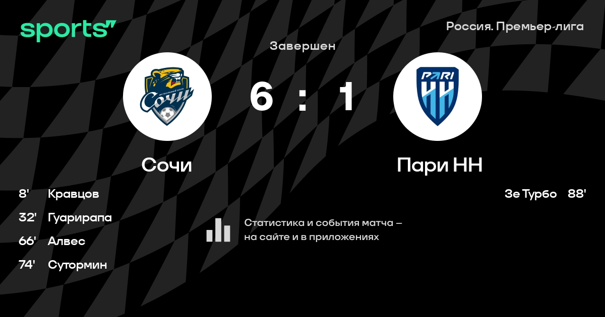 Сочи – Пари НН: Пари НН забивает в 4 последних матчах против этого соперника