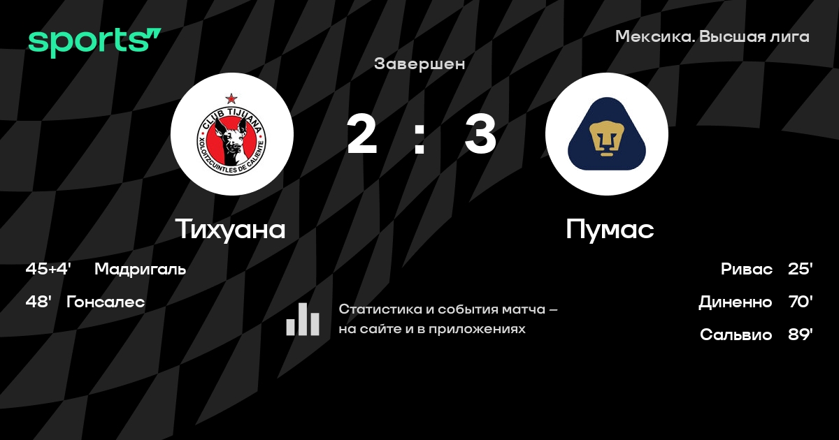 Тихуана – Пумас: Пумас не проигрывает в 5 из 7 последних матчей против этого соперника