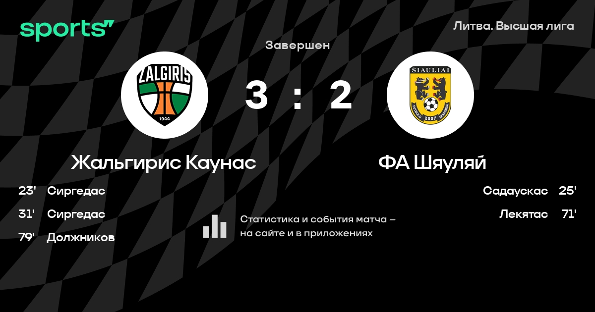 Жальгирис Каунас – ФА Шяуляй: Жальгирис Каунас не пропускает в 0 из 6 последних матчей против этого соперника