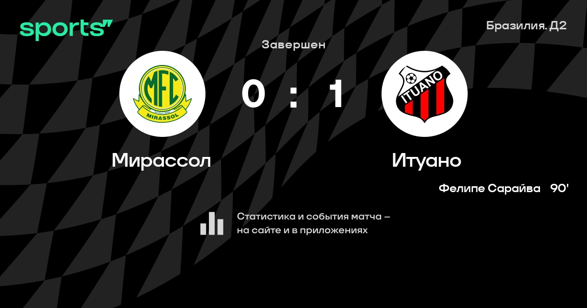 Мирассол – Итуано: Итуано не проигрывает в 5 из 7 последних матчей против этого соперника в гостях