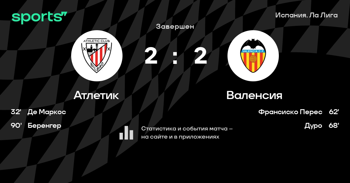 Атлетик – Валенсия: Валенсия не проигрывает в 6 из 8 последних матчей против этого соперника в гостях