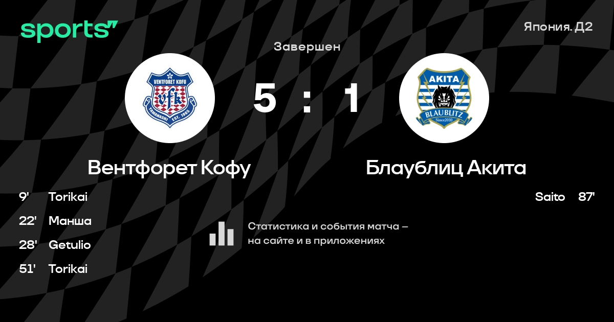 Вентфорет Кофу – Блаублиц Акита: коэффициенты