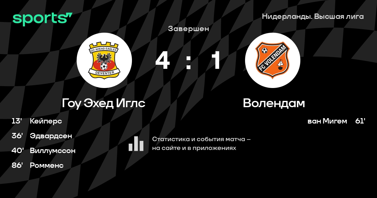 Гоу Эхед Иглс – Волендам: Гоу Эхед Иглс забивает в 3 последних матчах против этого соперника