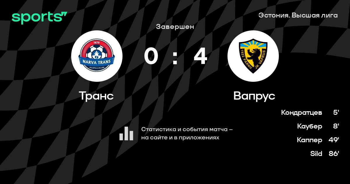 Транс – Вапрус: Транс не проигрывает в 8 из 9 последних матчей против этого соперника дома
