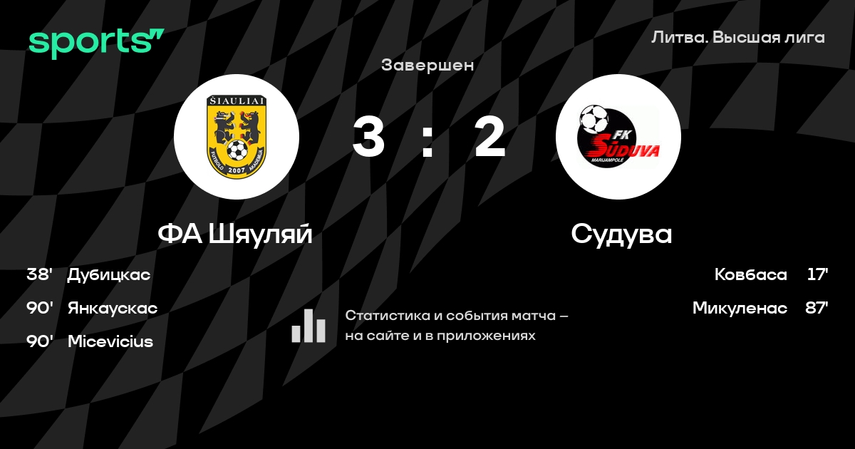 ФА Шяуляй – Судува: ФА Шяуляй побеждает в 3 последних очных матчах в турнире «Высшая лига»