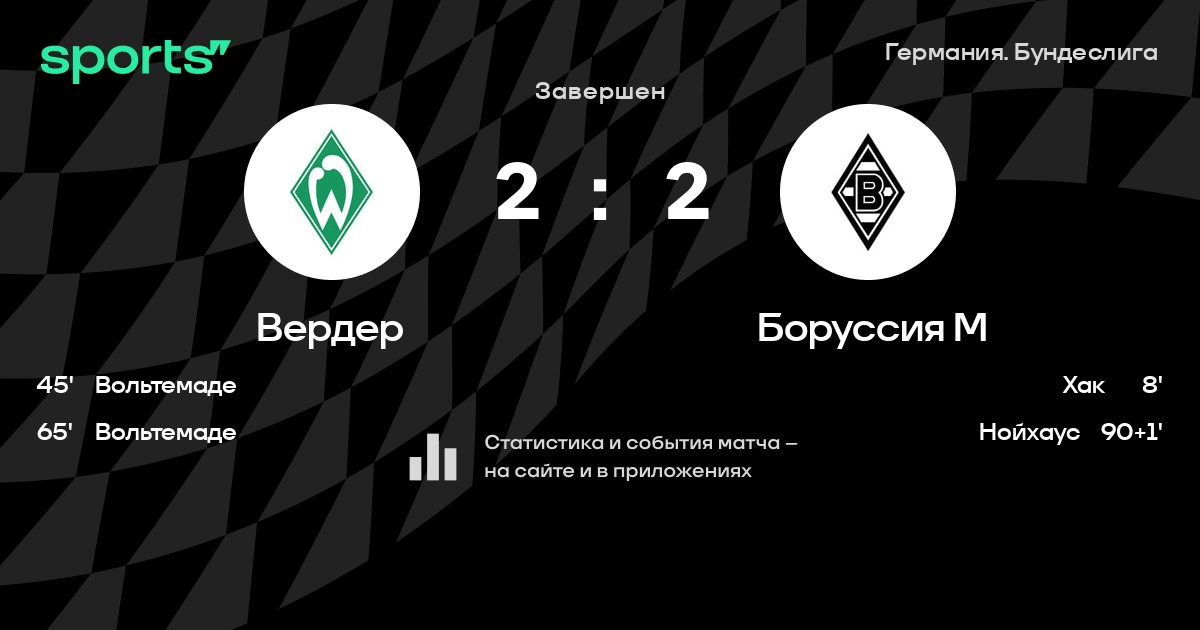 Вердер – Боруссия М: Боруссия М забивает в 5 из 7 последних матчей против этого соперника