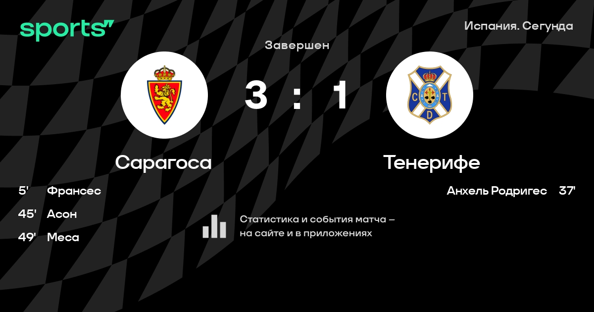 Сарагоса – Тенерифе: Сарагоса не проигрывает в 5 из 7 последних матчей против этого соперника