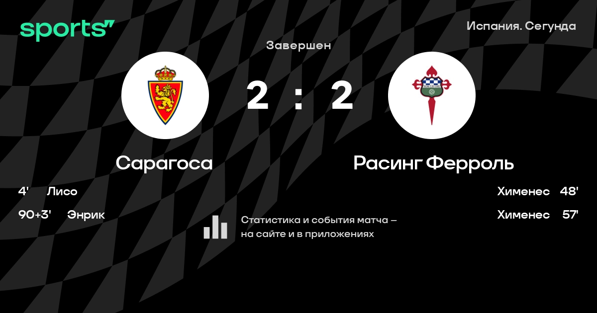 Сарагоса – Расинг Ферроль: Расинг Ферроль забивает в 3 последних матчах против этого соперника
