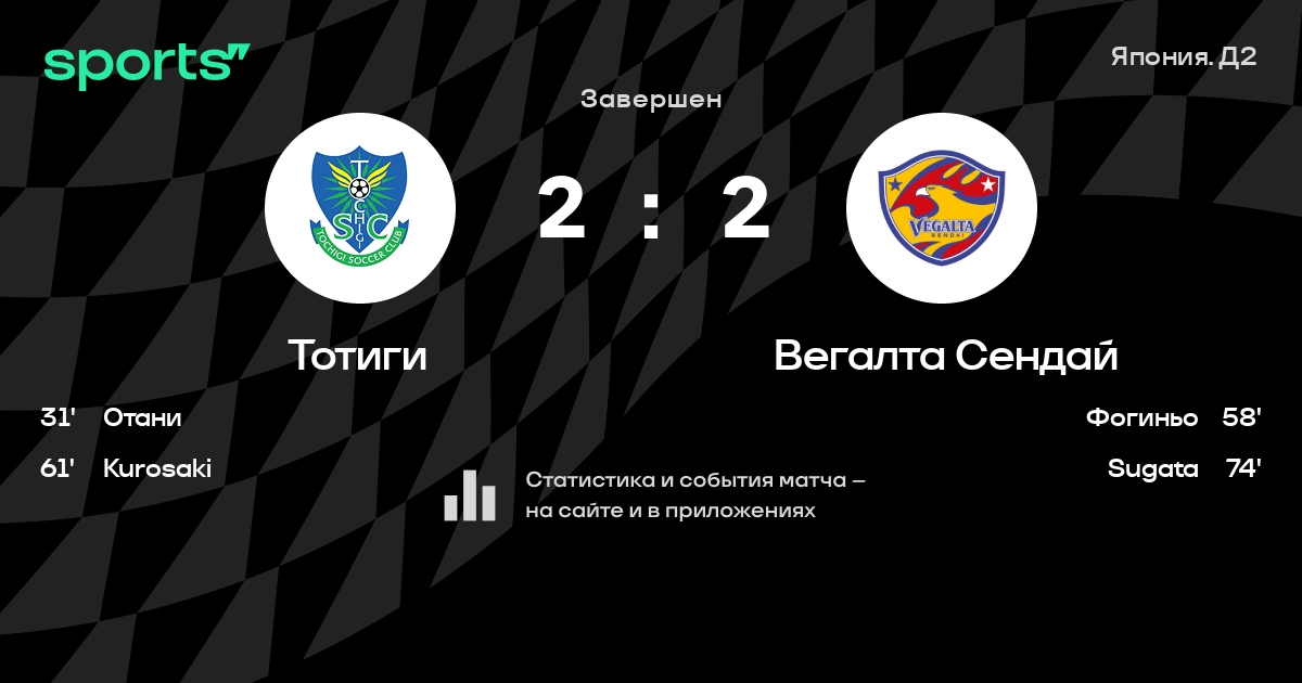 Тотиги – Вегалта Сендай: Вегалта Сендай забивает в 6 последних матчах против этого соперника