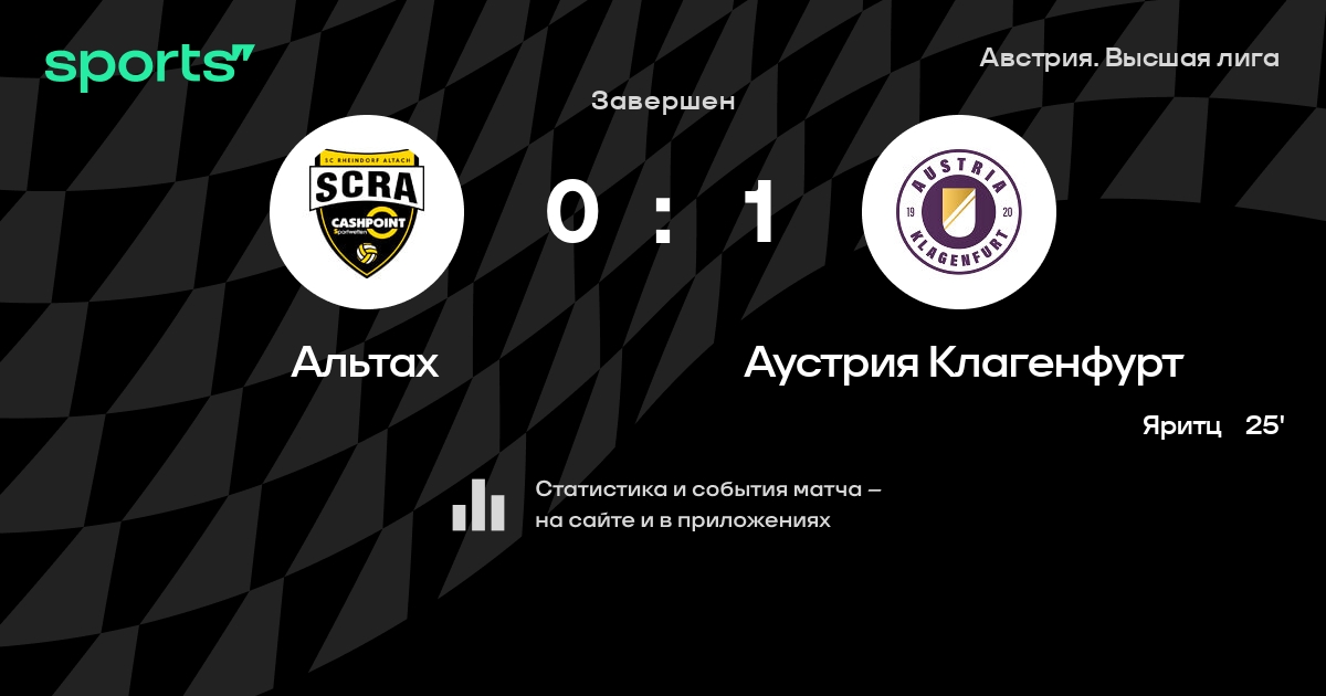 Альтах – Аустрия Клагенфурт: коэффициенты