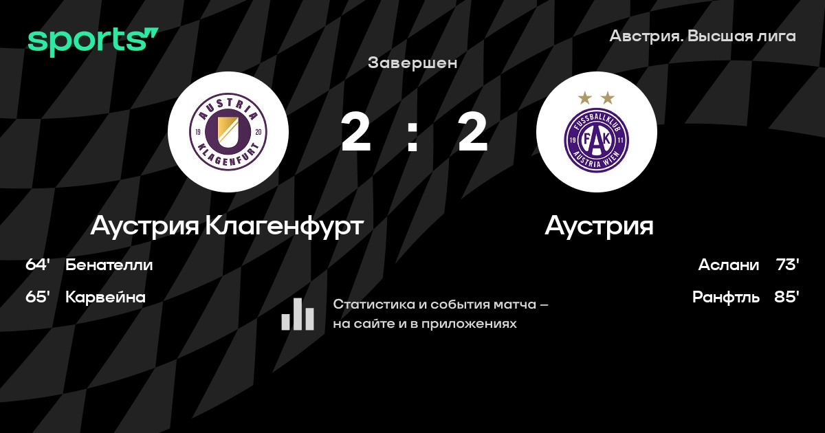 Аустрия Клагенфурт – Аустрия: Аустрия Клагенфурт забивает в 7 из 9 последних матчей против этого соперника