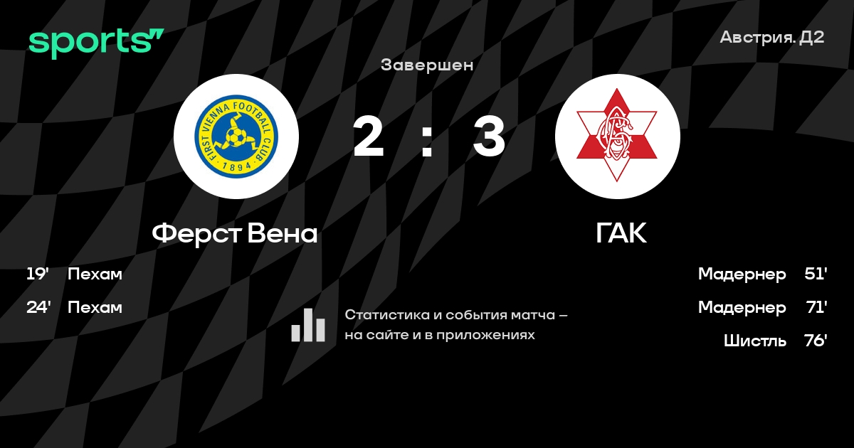 Ферст Вена – ГАК: ГАК забивает в 3 последних матчах против этого соперника