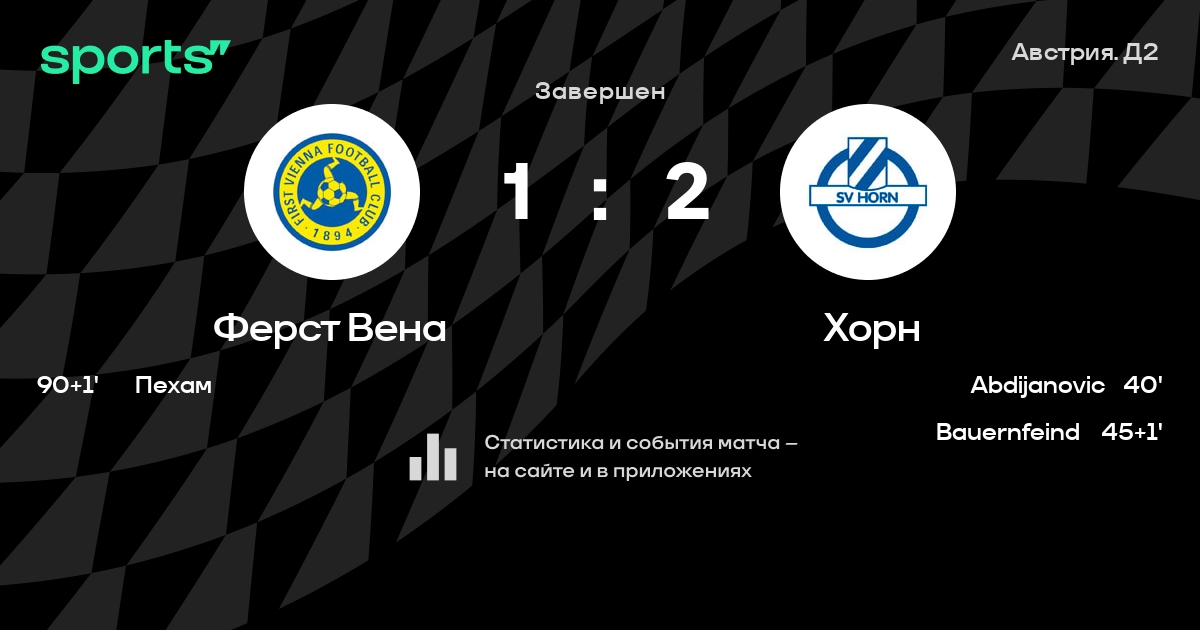 Ферст Вена – Хорн: Хорн не проигрывает в 6 из 8 последних матчей против этого соперника в турнире «Вторая бундеслига»