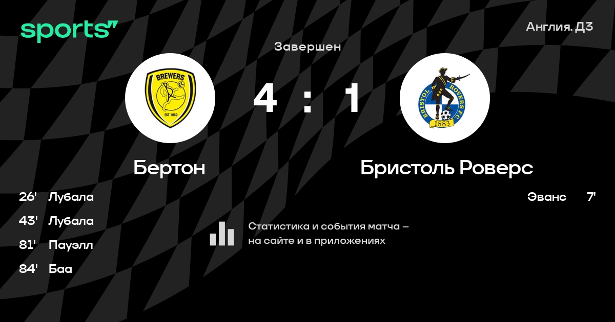 Бертон – Бристоль Роверс: Бертон не проигрывает в 6 из 8 последних матчей против этого соперника