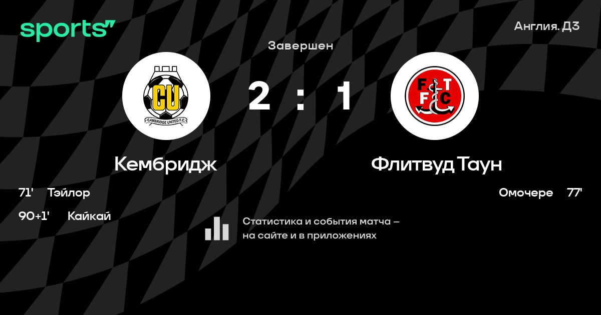 Кембридж – Флитвуд Таун: Кембридж побеждает в 3 последних очных матчах