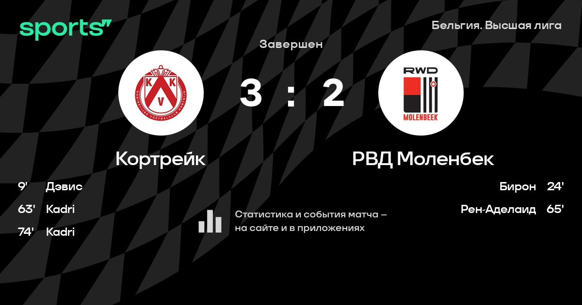 Кортрейк – РВД Моленбек: РВД Моленбек забивает в 6 последних матчах против этого соперника