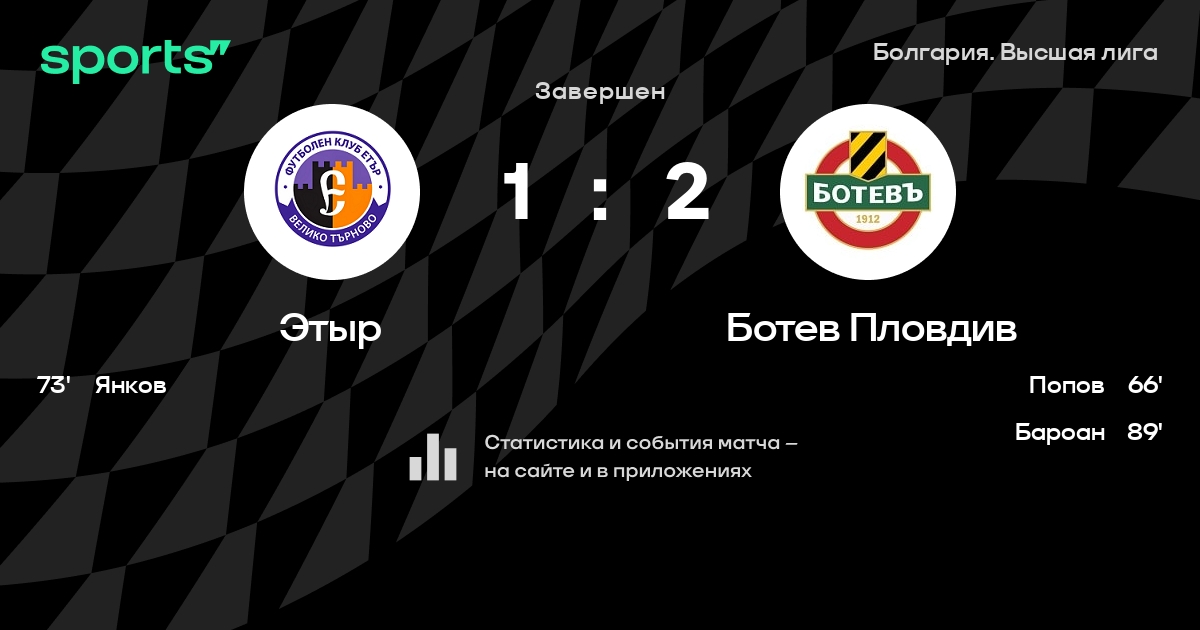 Этыр – Ботев Пловдив: Ботев Пловдив не проигрывает в 8 из 10 последних матчей против этого соперника