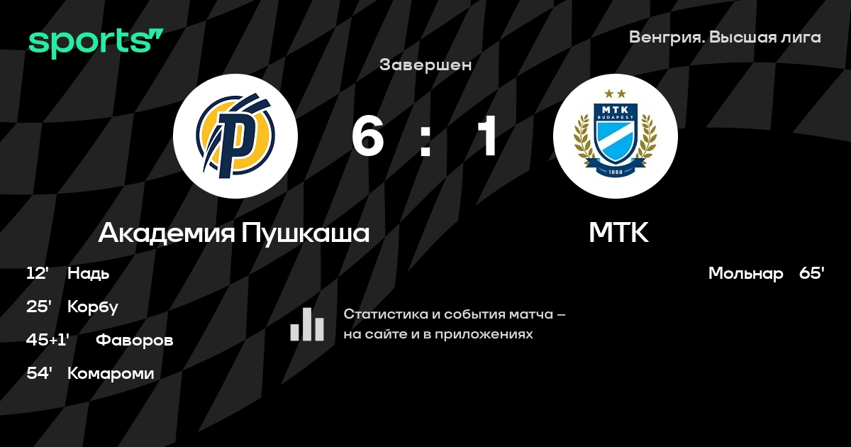 Академия Пушкаша – МТК: Академия Пушкаша забивает в 5 из 7 последних матчей против этого соперника