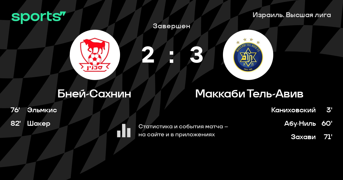 Бней-Сахнин – Маккаби Тель-Авив: Бней-Сахнин не проигрывает в 5 из 7 последних матчей против этого соперника в турнире «Премьер-лига»