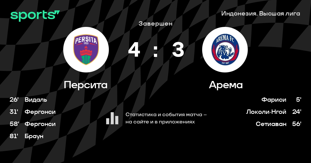 Персита – Арема: Арема не пропускает в 4 последних матчах против этого соперника