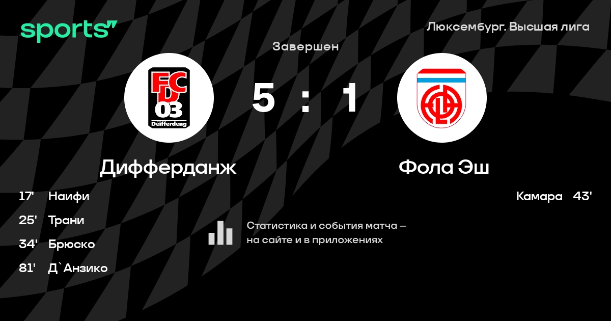 Дифферданж – Фола Эш: Фола Эш забивает в 11 из 13 последних матчей против этого соперника
