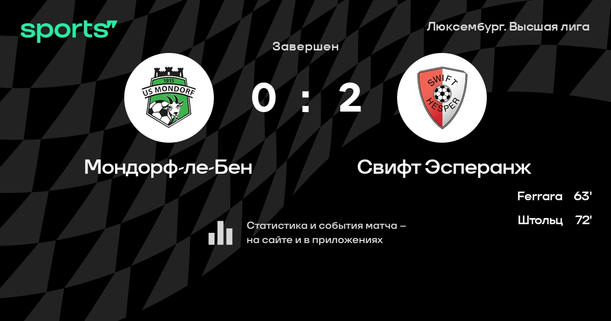 Мондорф-ле-Бен – Свифт Эсперанж: Мондорф-ле-Бен забивает в 8 из 10 последних матчей против этого соперника