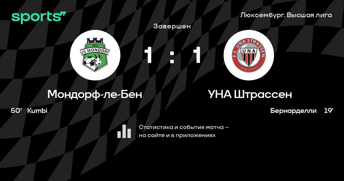 Мондорф-ле-Бен – УНА Штрассен: УНА Штрассен не проигрывает в 5 из 7 последних матчей против этого соперника в гостях