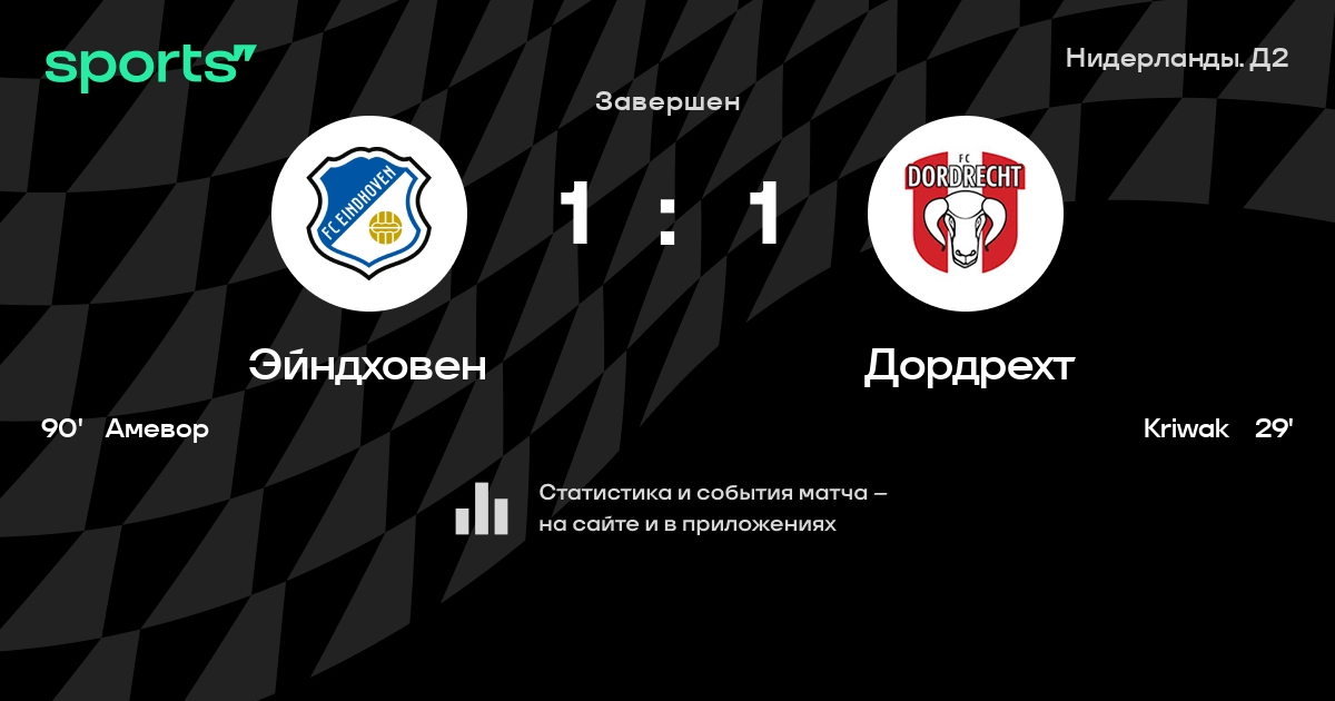Эйндховен – Дордрехт: Дордрехт забивает в 8 из 10 последних матчей против этого соперника