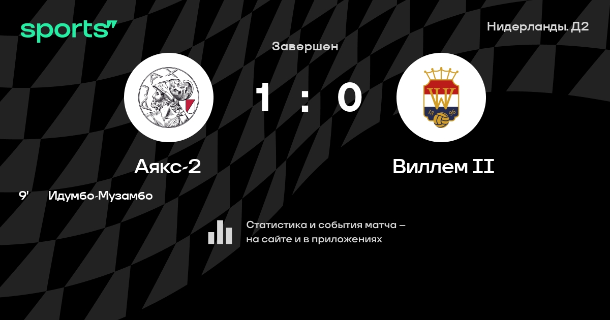 Аякс-2 – Виллем II: Виллем II забивает в 4 последних матчах против этого соперника