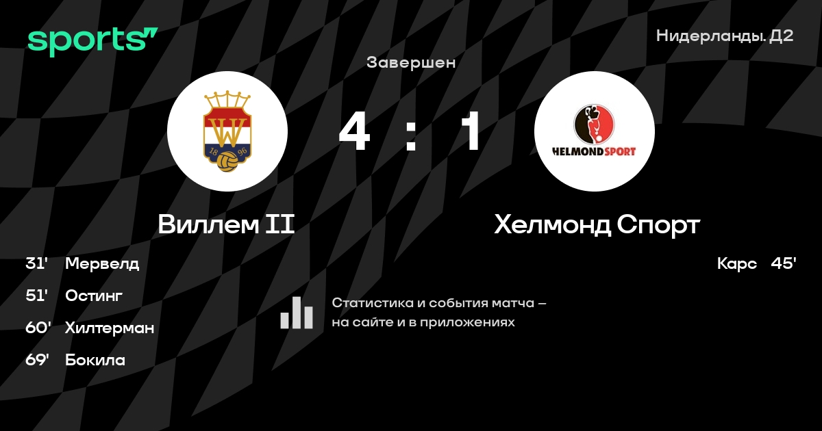 Виллем II – Хелмонд Спорт: Хелмонд Спорт забивает в 6 последних матчах против этого соперника