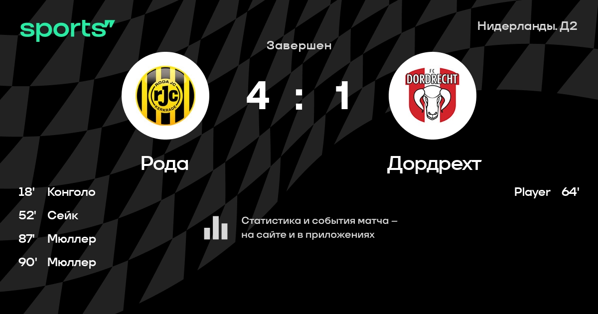 Рода – Дордрехт: Рода забивает в 15 из 16 последних матчей против этого соперника