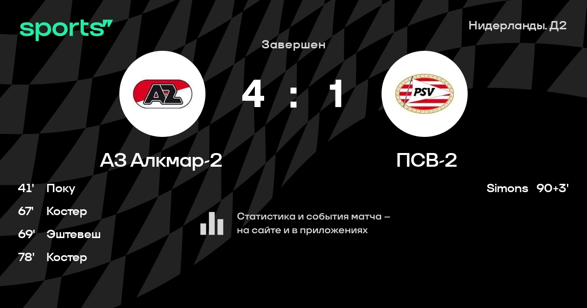 АЗ Алкмар-2 – ПСВ-2: ПСВ-2 забивает в 3 последних матчах против этого соперника