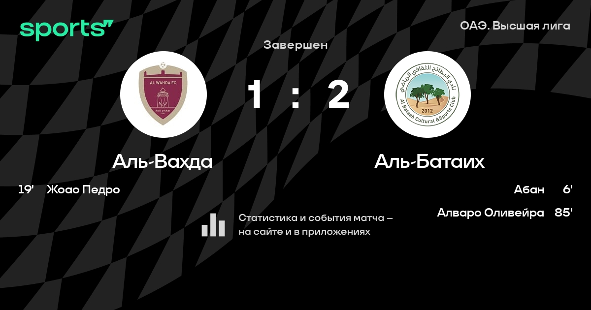 Аль-Шамси - Бутти, Лукас Пимента, Зуир, Аль-Карби - Аль-Мансури, Хрибин, Нуроллахи, Аллан, Kruspzky - Жоао ПедроЗапасные: Али, Рашид, Фарес Джума, Рубен Канеду, Ashtai, Хамис, Al Somhi, Al Ruwais, Матар
