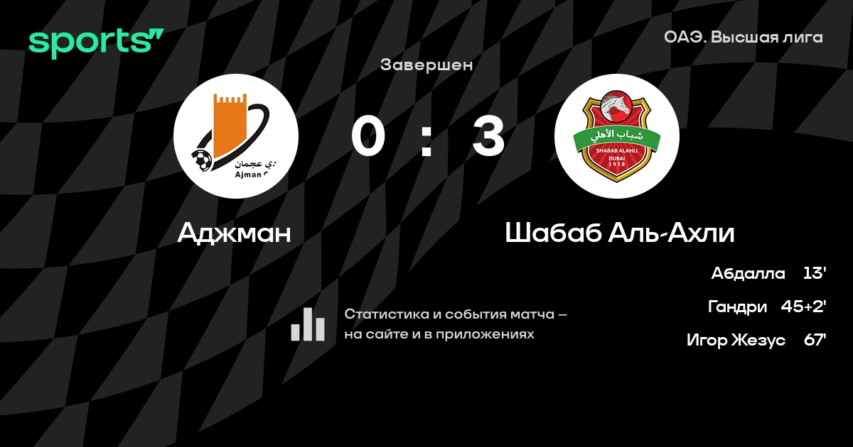 Аджман – Шабаб Аль-Ахли: Шабаб Аль-Ахли забивает в 16 последних матчах против этого соперника