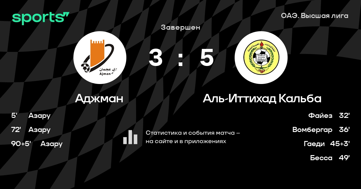 Аджман – Аль-Иттихад Кальба: Аджман побеждает в 3 последних очных матчах в турнире «Высшая лига»