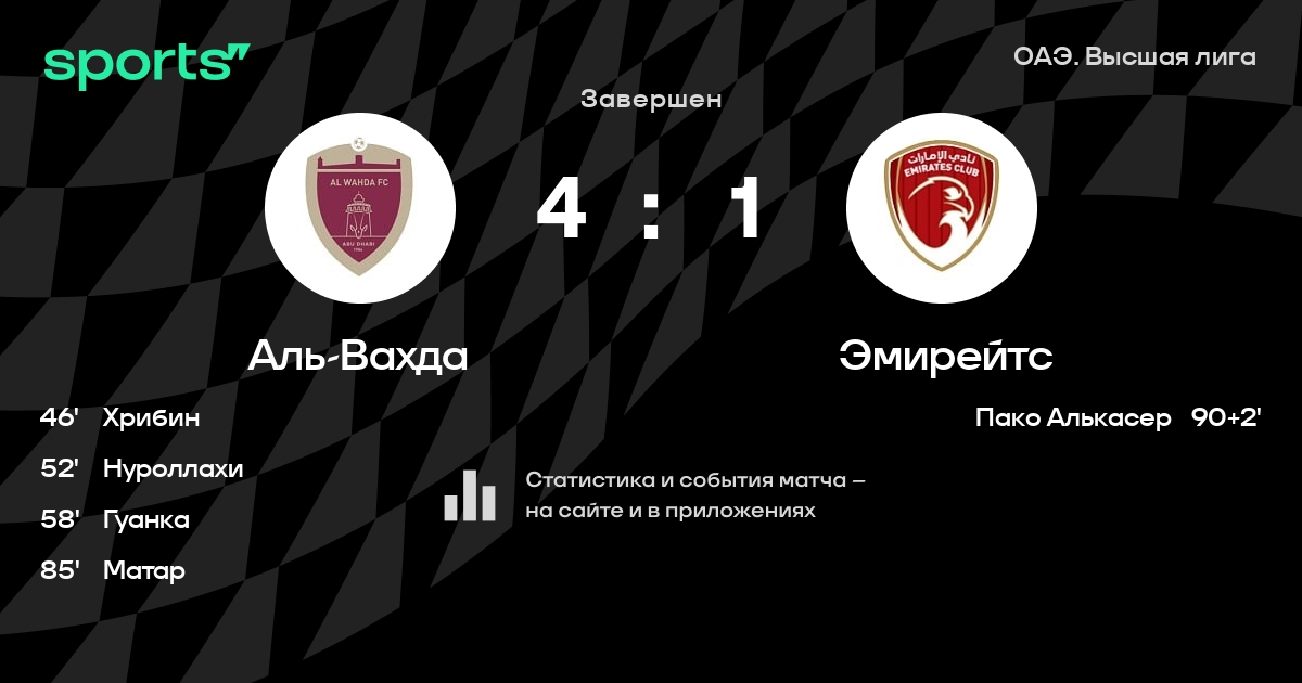 Аль-Вахда – Эмирейтс: Аль-Вахда побеждает в 12 последних очных матчах