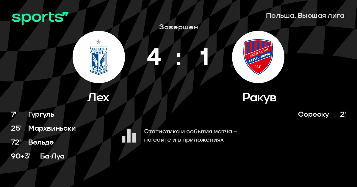 Лех – Ракув: Ракув не проигрывает в 8 из 10 последних матчей против этого соперника
