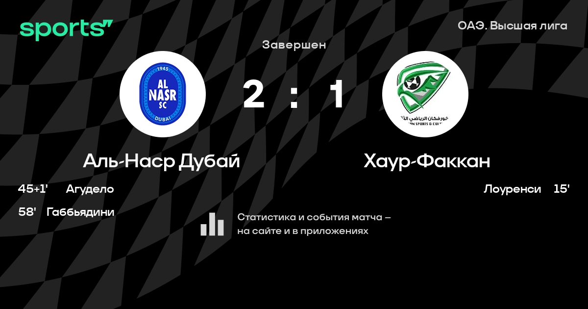 Аль-Наср Дубай – Хаур-Факкан: Аль-Наср Дубай побеждает в 6 последних очных матчах дома