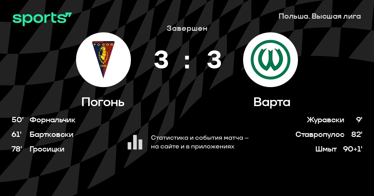 Погонь – Варта: Погонь забивает в 8 последних матчах против этого соперника