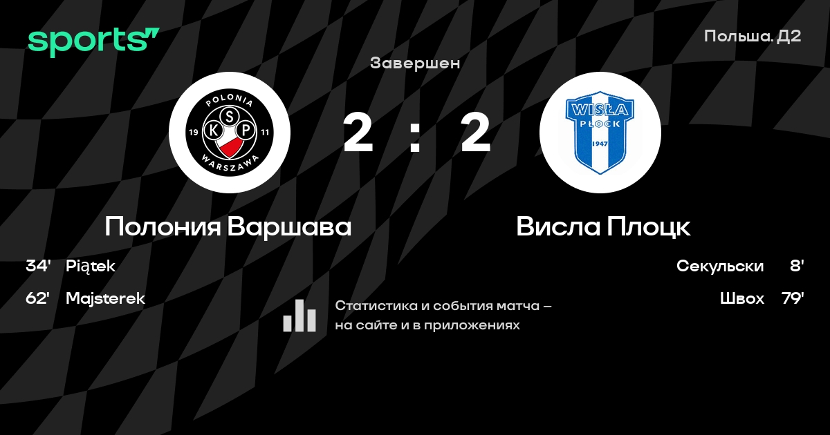Полония Варшава – Висла Плоцк: Висла Плоцк не проигрывает в 8 из 10 последних матчей против этого соперника