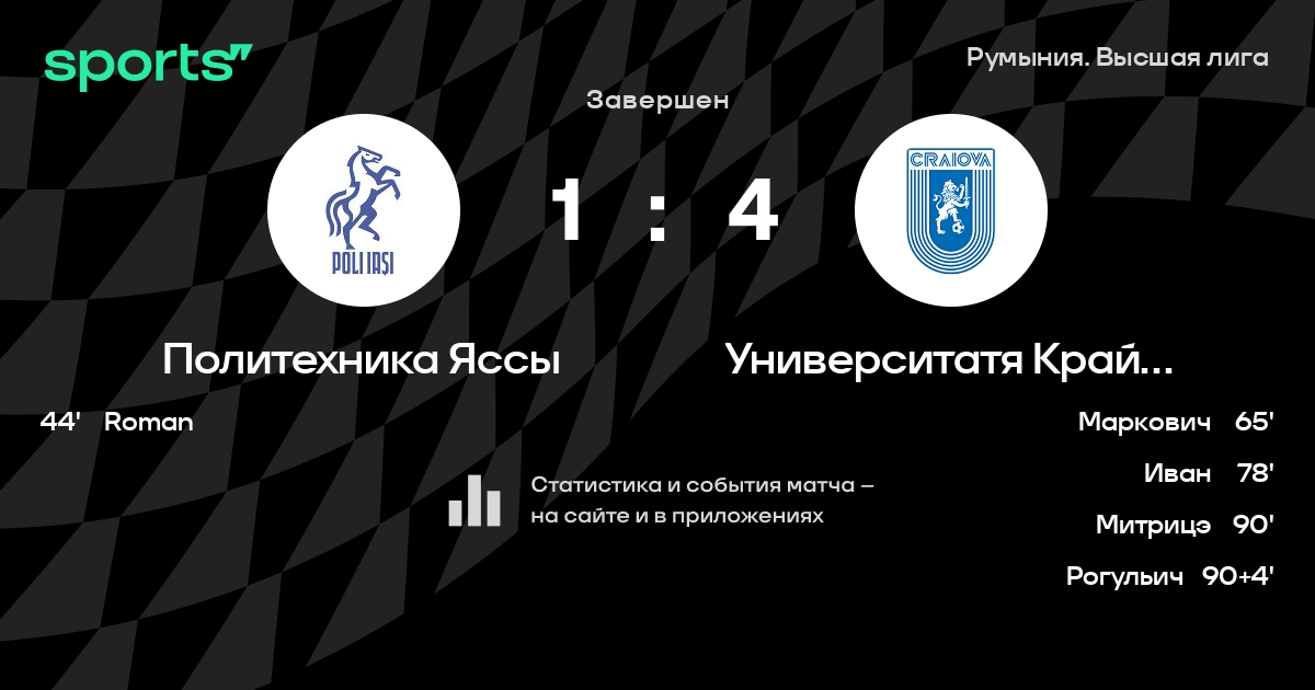Поли Яссы – КСУ Крайова: КСУ Крайова забивает в 6 последних матчах против этого соперника
