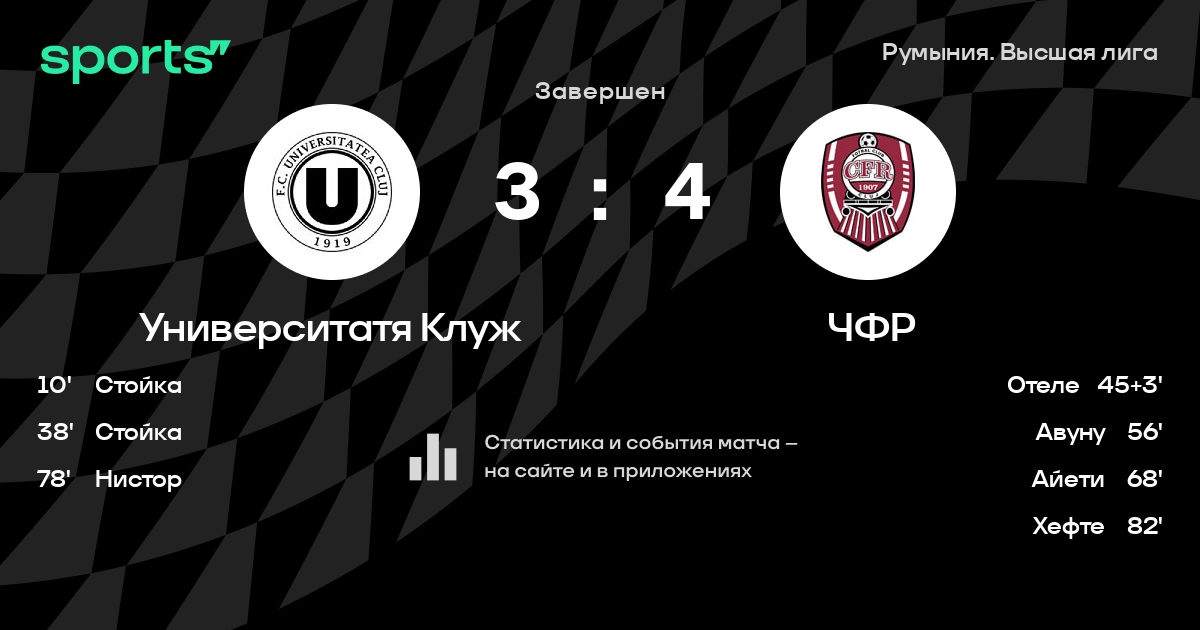 Университатя Клуж – ЧФР: ЧФР забивает в 3 последних матчах против этого соперника