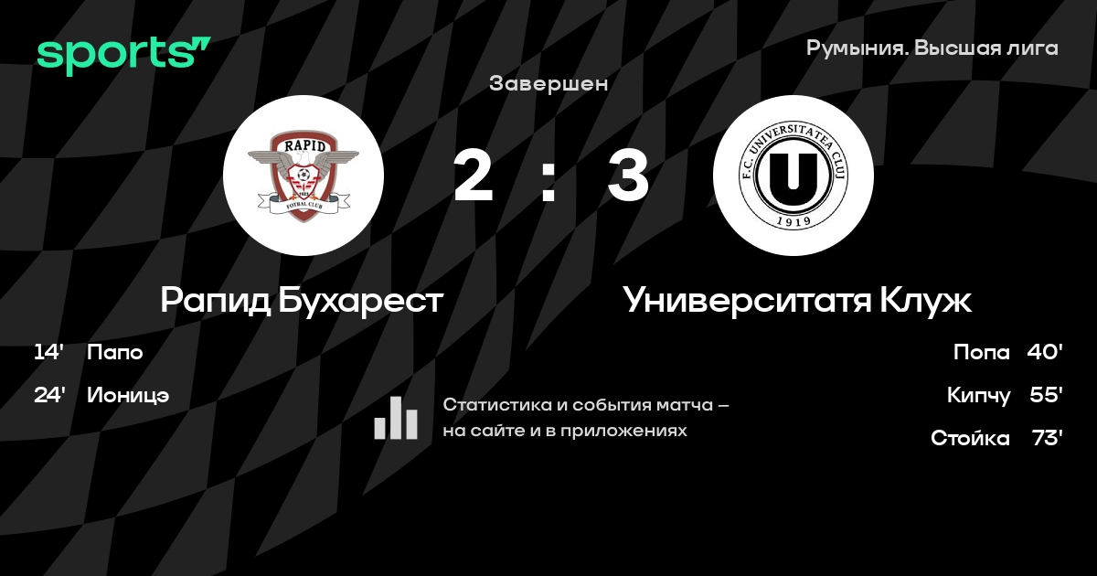 Рапид Бухарест – Университатя Клуж: Рапид Бухарест не пропускает в 6 последних матчах против этого соперника