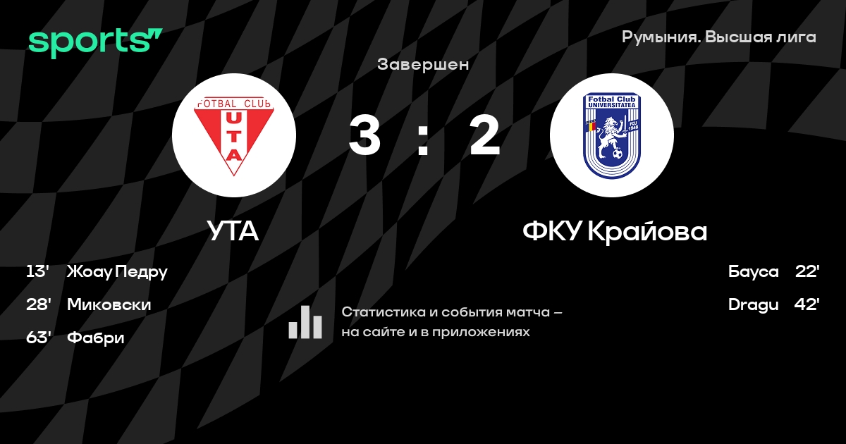 УТА – ФКУ Крайова: ФКУ Крайова забивает в 6 из 8 последних матчей против этого соперника