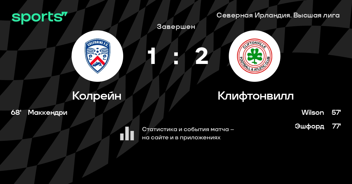 Колрейн – Клифтонвилл: Клифтонвилл не проигрывает в 5 последних матчах против этого соперника