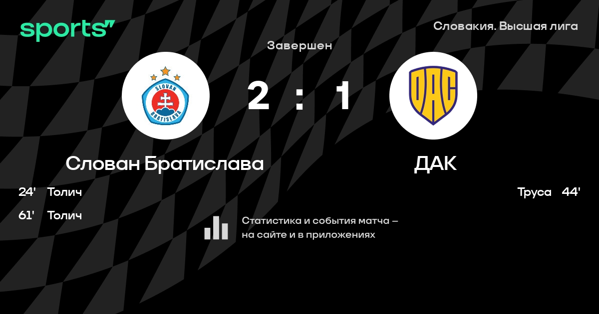 Слован Братислава – ДАК: Слован Братислава не проигрывает в 5 из 7 последних матчей против этого соперника