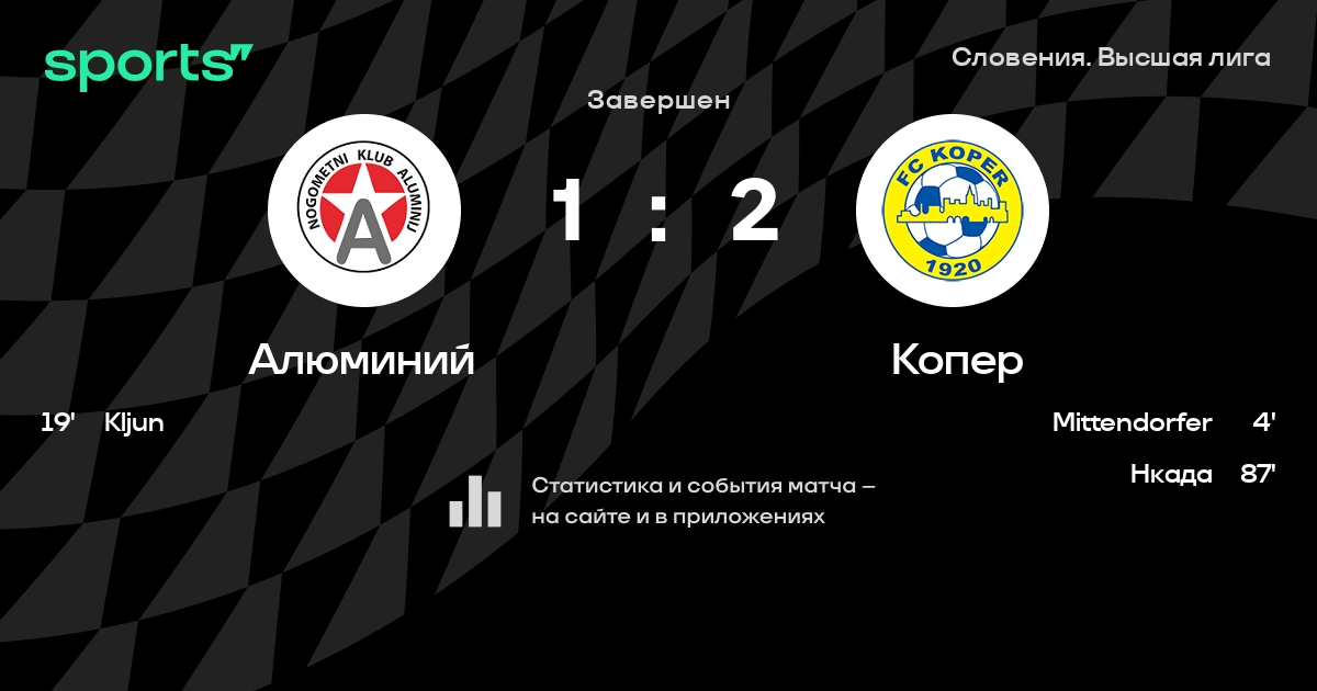 Алюминий – Копер: Копер забивает в 6 из 8 последних матчей против этого соперника