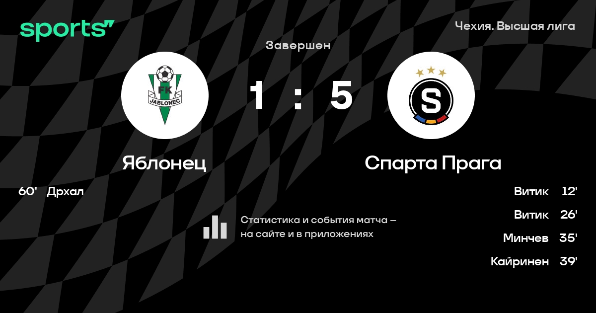 Яблонец – Спарта Прага: Спарта Прага не проигрывает в 5 последних матчах против этого соперника